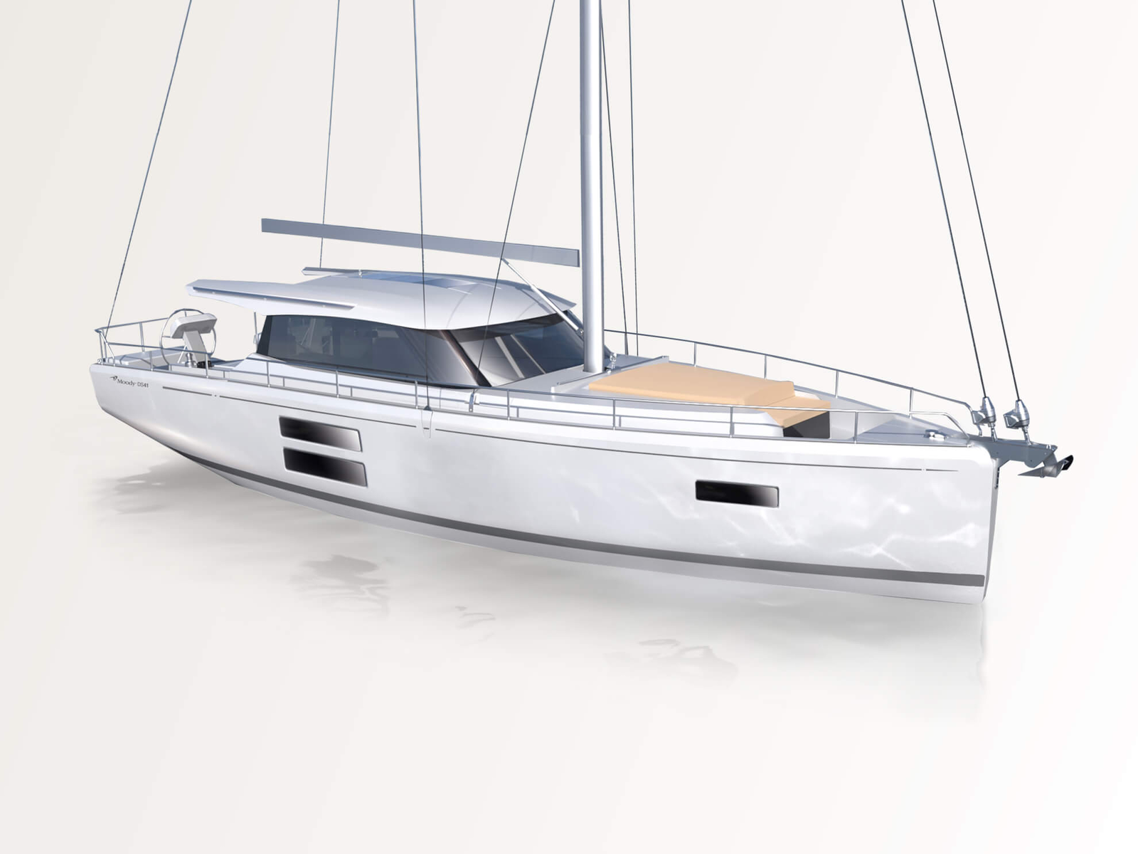 Moody's latest model, DS41 was presented at Boot Düsseldorf in 2020. It is the smallest model in their series of decksaloon boats. There is no mistaking that it is a Moody, the design language is the same as the other boats in the series.