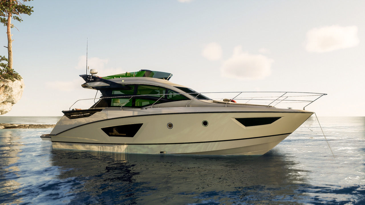Auto translate:Enjoy the thrill of the Sportfly version of Beneteau’s flagship sport cruiser. Its second driving station has a spectacular view of the sea and, like many other details on this boat it is simply terrific !