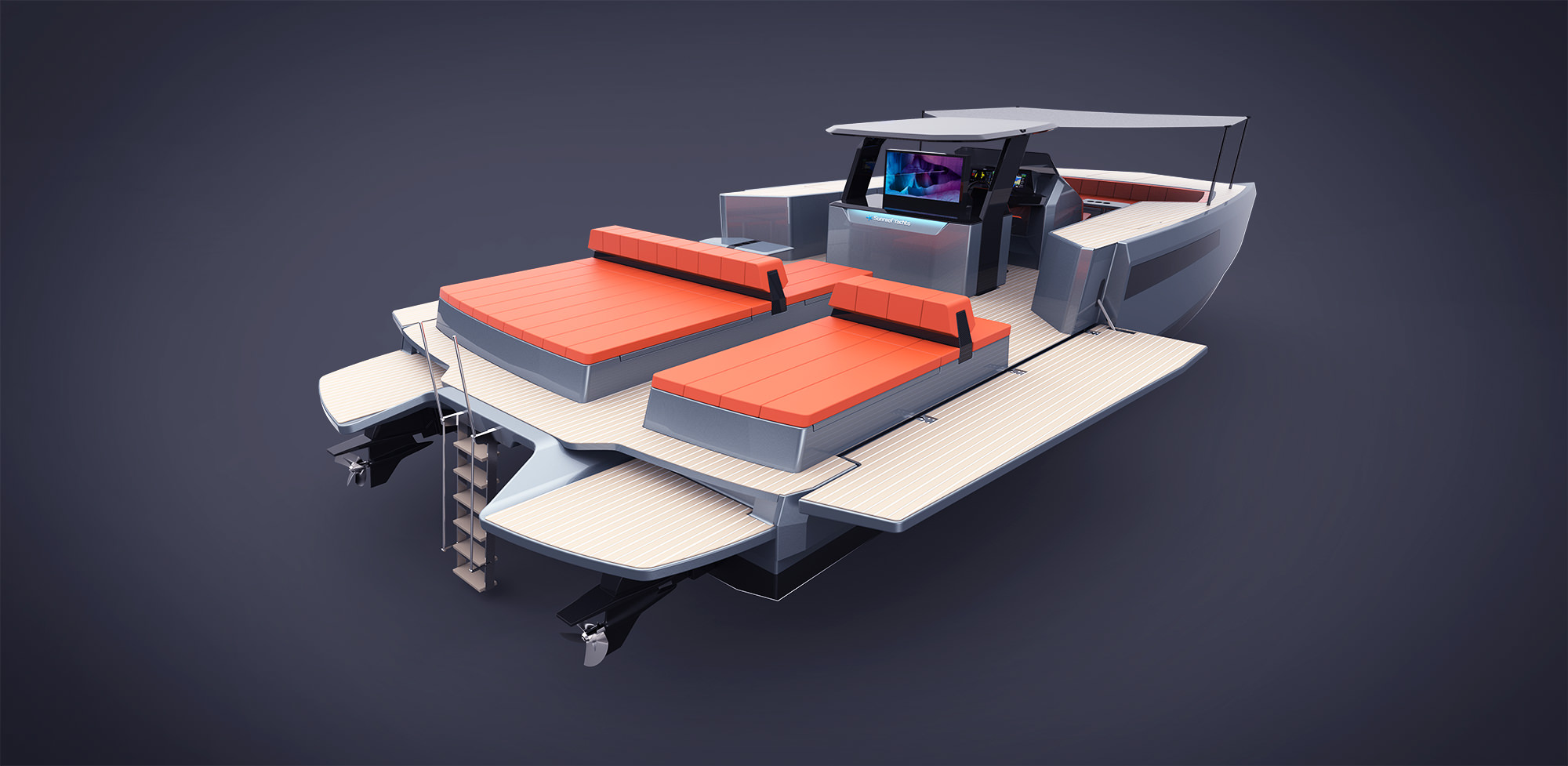 Auto translate:A dynamic day cruiser taking speed and luxury to a whole new level. Following her launch and tests, this radical multihull speedster is currently being shipped to Dubai to debut at the Dubai International Boat Show 2018.