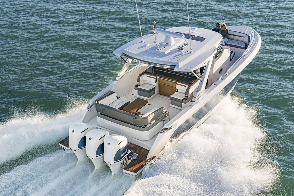 The Tiara Sport LS is the reinterpretation of luxury sport yachting, a fusion of sophistication with the demands of day yachting. Walk-around capabilities lead you to multiple social zones or right to the water for your favorite activity. An outdoor galley provides space to entertain guests. You'll find luxury lounging via convertible sun pad, elegant cabin and aft cockpit areas. Below deck, find accommodations where you can easily overnight in the well appointed cabin.