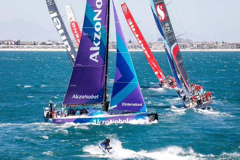 Volvo Ocean Race fleet flying out of Cape Town heading Melbourne